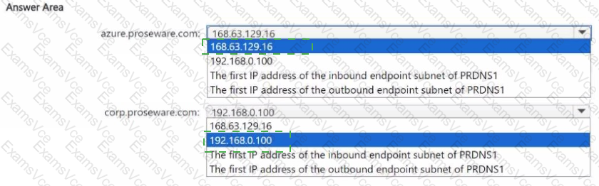 You need to configure the destination IP address for azure.proseware.com and for corp.proseware.com. The solution must meet the general requirements.