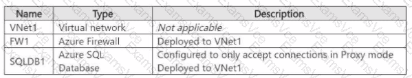 You need to configure FW1 to filter traffic that originates from VNet1 and targets the FQDN of SQLDB1 Which type of rule should you use?