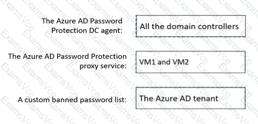 Where should you configure the components for Azure AD Password Protection? lo answer, drag the appropriate components to the correct locations. Each component may be used once, more than once, or not at all. You may need to drag the split bar between panes or scroll to view content.