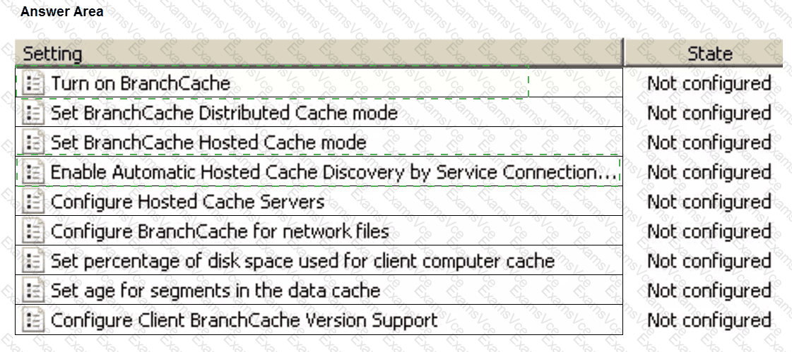 Which two Group Policy settings should you configure? To answer, select the settings in the answer area.