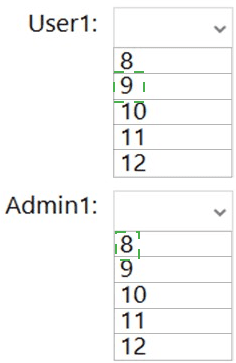 What is the effective minimum password length for User1 and Admin1? To answer, select the appropriate options in the answer area.