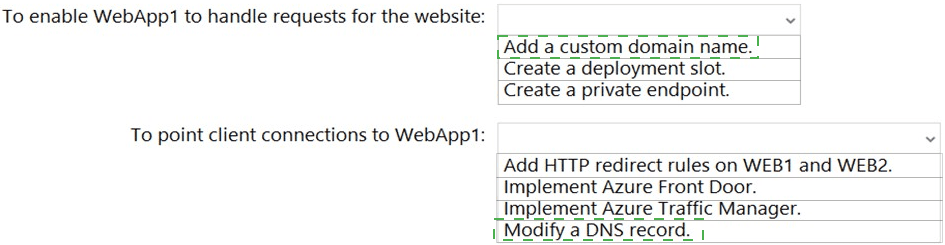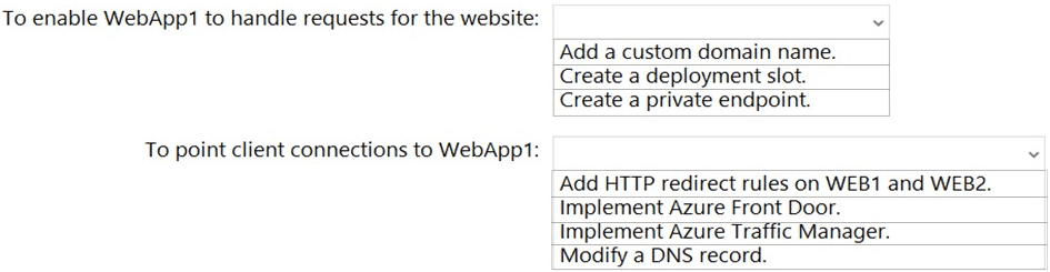 How should you configure WebApp1? To answer, select the appropriate options in the answer area.