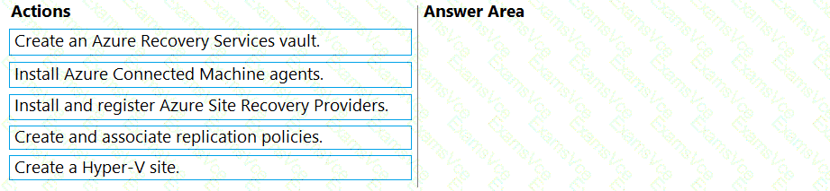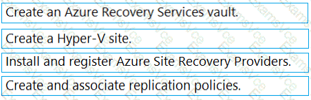 Which four actions should you perform in sequence before you can enable replication? To answer, move the appropriate actions from the list of actions to the answer area and arrange them in the correct order.