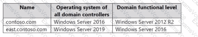 Your network contains an Active Directory Domain Services (AD DS) forest. The forest functional level is Windows Server 2012 R2. The forest contains the domains shown in the following table.