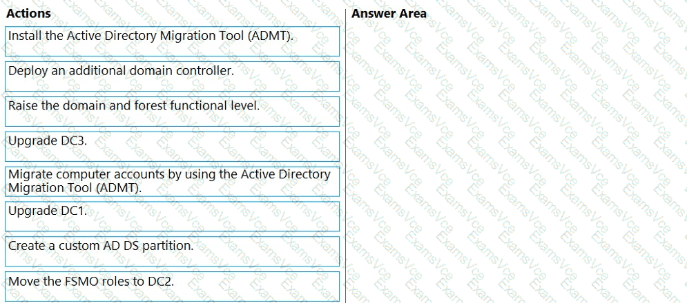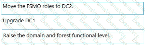 You need to raise the forest functional level to Windows Server 2016. The solution must meet the following requirements:
