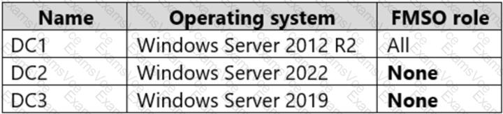 Your network contains an Active Directory Domain Services (AD DS) domain named contoso.com. The functional level of the forest and the domain is Windows Server 2012 R2. The domain contains the domain controllers shown in the following table.