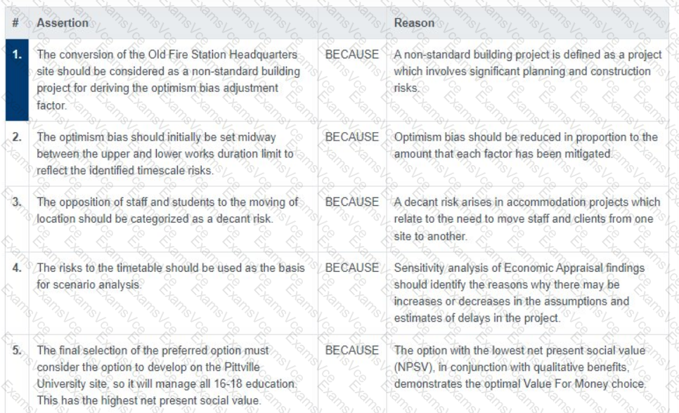 Lines 1 to 5 in the table below consist of an assertion statement and a reason statement. For each