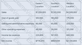 Western location has the highest sales ($4,500,000) and highest net income ($2,720,000).