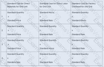 Which row correctly identifies the calculation to establish standard costs for direct materials, direct labor, and factory overhead?