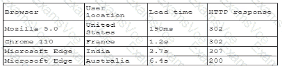 A company receives several complaints from customers regarding its website. An engineer implements a parser for the web server logs that generates the following output: