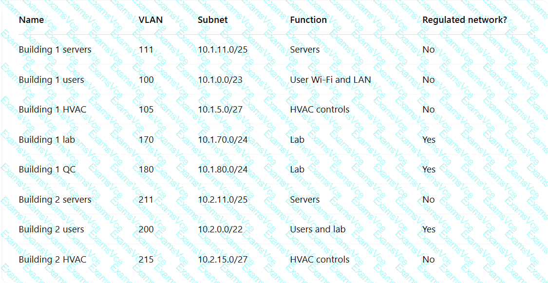 A pharmaceutical lab hired a consultant to identify potential risks associated with Building 2, a new facility that is under construction. The consultant received the IT project plan, which includes the following VLAN design: