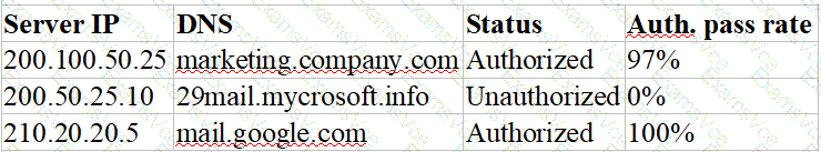 A security engineer discovers that some legacy systems are still in use or were not properly decommissioned. After further investigation, the engineer identifies that an unknown and potentially malicious server is also sending emails on behalf of the company. The security engineer extracts the following data for review: