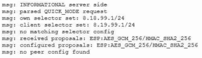 An administrator reviews the following log and determines the root cause of a site-to-site tunnel failure: