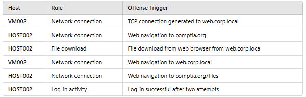 HOST002 is the only device authorized for internet traffic. However, theSIEM logs show that VM002 is making network connections to web.corp.local.