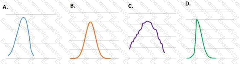 An analyst is doing a clinical study on the value of analyte among a large population of healthy people. The analyst is going to use a Gaussian Distribution to share the results. Which of the following represents a Gaussian Distribution? (IMAGE TAKEN)