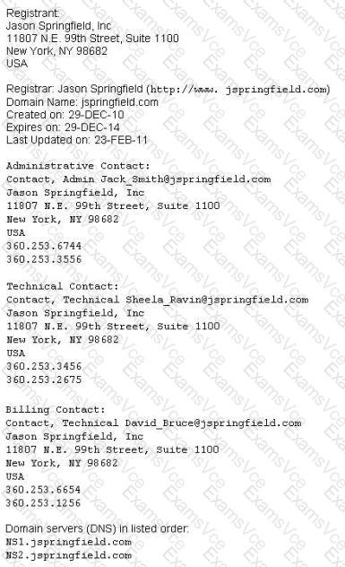Sometimes a company shares a little too much information on their organization through public domain records. Based on the above whois record, what can an attacker do? (Select 2 answers)