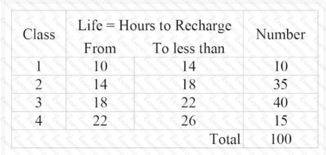 The correct answer is C. 18.40 . In CSSBB descriptive statistics, the mean is the total of all data values divided by the number of data points. For grouped frequency data, the estimated mean is found by using each class midpoint multiplied by its frequency, summing those products, and dividing by the total count.