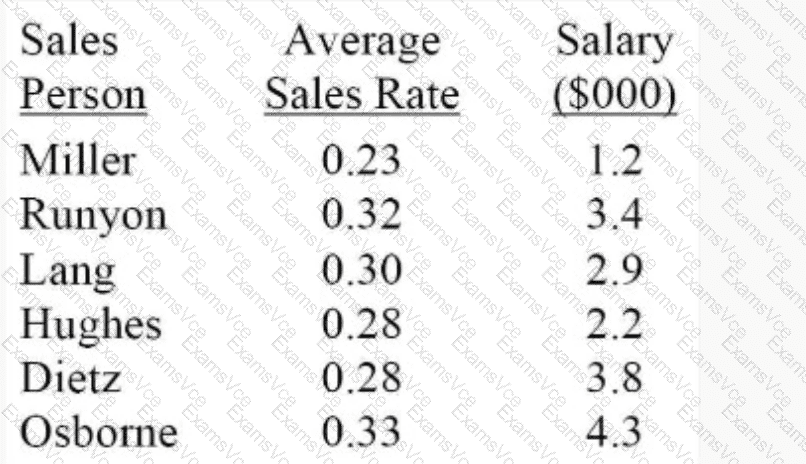 The following table shows the sales rates and respective salaries for members of a team.