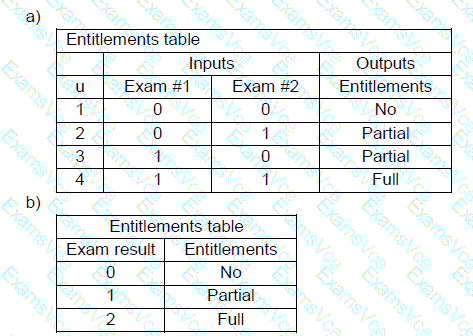 Option B shows a mapping from total score to entitlements but doesn't model how the total is derived from the two exams.