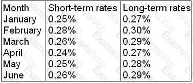 A company has decided to manage its short-term investment portfolio in-house. It is looking for enhanced capital gains as well as the ability to sell the instruments on the secondary market at a premium. The investment manager has forecasted the interest rates shown below: