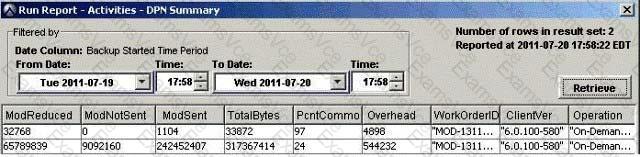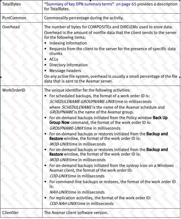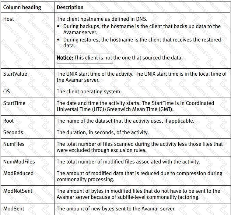 Which field on the report indicates how much data has been transferred to the Dell Avamar server?