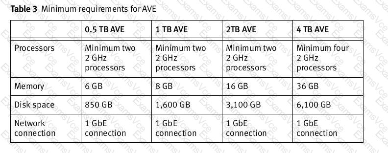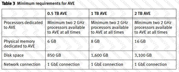 What is the physical memory requirement for an Dell AVE with 1 TB capacity?