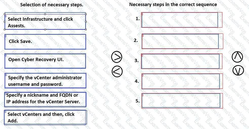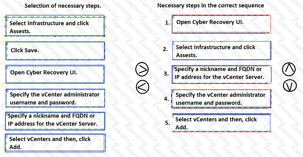 When you install a vCenter Server in an on-premises Dell PowerProtect Cyber Recovery vault, you must register it with the PowerProtect Cyber Recovery software. Arrange the necessary steps in chronological order.