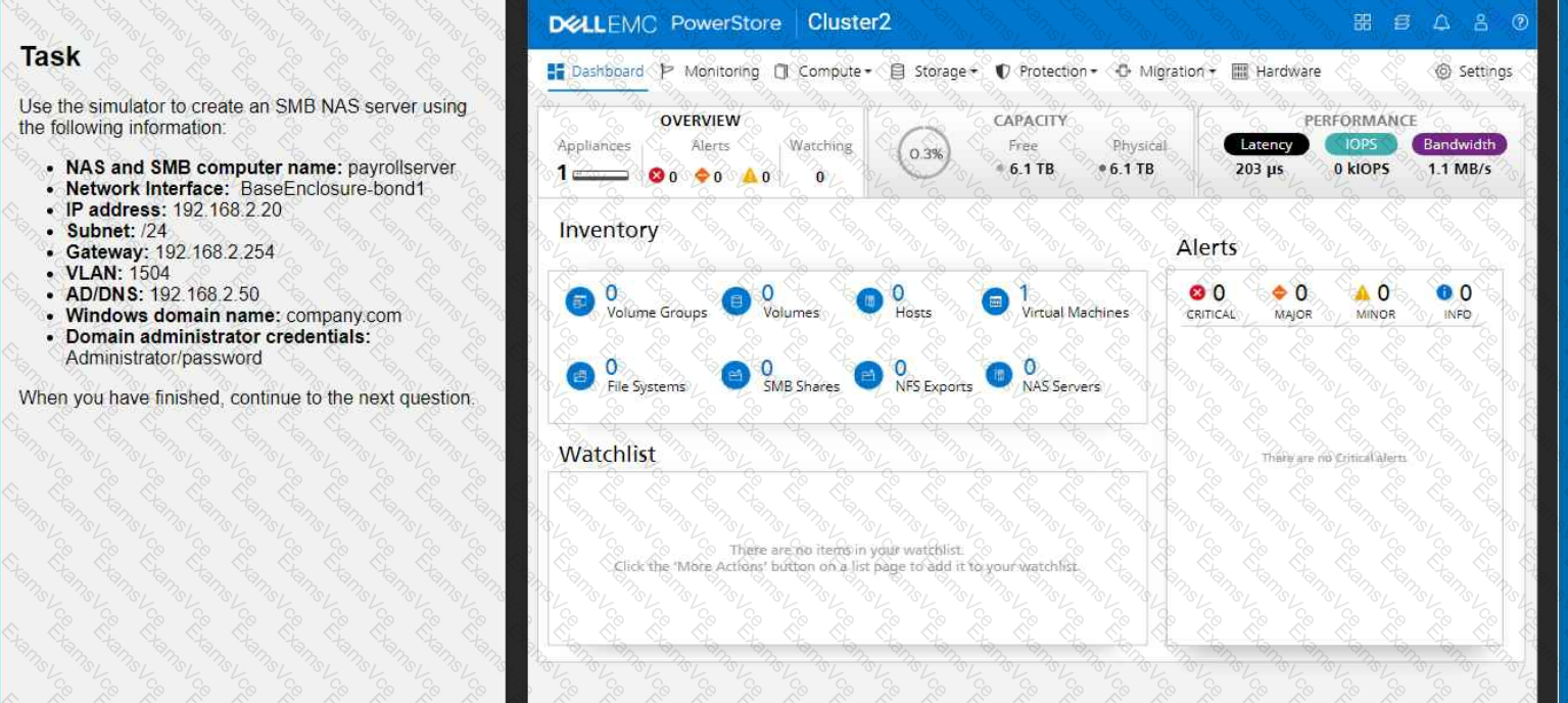create an SMB NAS server in the PowerStore simulator using the provided information.