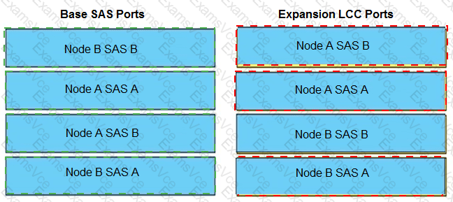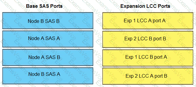 When connecting a PowerStore base enclosure to 2 expansion enclosures, match the base SAS ports in column A to their corresponding expansion LCC ports in column B.