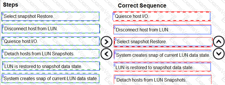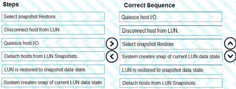 A storage engineer was asked to restore a LUN snapshot using a previous copy.