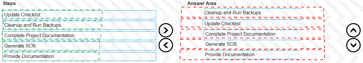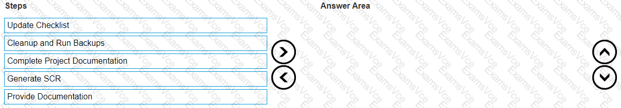 [Reference: Best practices in project management emphasize the importance of securing data before concluding the project., Update Checklist:, Explanation: After backups, updating the checklist ensures that all tasks have been completed. This step confirms that nothing has been overlooked., Reference: Project management methodologies such as PMBOK suggest using checklists to track progress and ensure all steps are accounted for., Complete Project Documentation:, Explanation: Documenting the entire project, including steps taken, configurations, and any issues encountered, is vital for future reference and support., Reference: ITIL (Information Technology Infrastructure Library) guidelines highlight the importance of thorough documentation for knowledge transfer and project closure., Generate SCR (Service Change Request):, Explanation: An SCR is created to formally request any changes or updates needed post-deployment. This ensures that any required modifications are tracked and managed., Reference: Change management processes as defined in ITIL emphasize the creation of SCRs for managing changes effectively., Provide Documentation:, Explanation: Finally, all the compiled documentation is provided to the client or the relevant stakeholders. This includes user manuals, configuration details, and support guides., Reference: The PMI (Project Management Institute) advocates for the distribution of documentation to ensure smooth handover and operational continuity., By following this sequence, the project deliverables are finalized methodically, ensuring a comprehensive and organized transition to the client or operational team., , , , ]