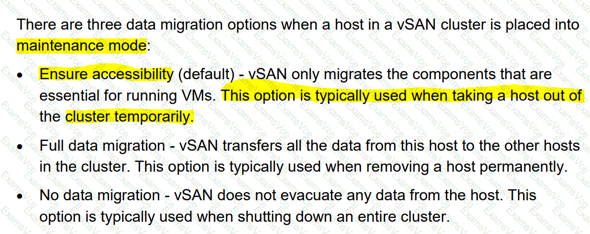 An implementation engineer places a VxRail node into maintenance mode using the Ensure accessibility setting What is the engineer likely planning to do?