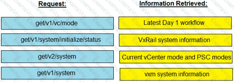 Match each VxRail API request with the information to be retrieved.