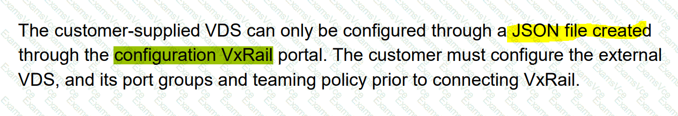 The VxRail Deployment Wizard is being used on a VxRail cluster with a customer-supplied VDS. Which settings must be used to ensure successful installation?