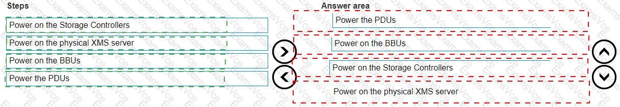 After the XtremlO X1 has been racked and the cabling has been checked, you now need to power on the XtremIO. What are the documented sequence of steps to power on the XtremIO?
