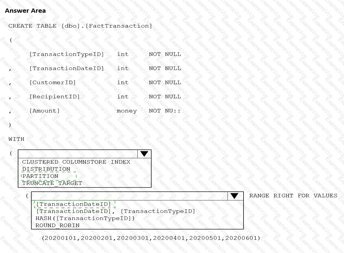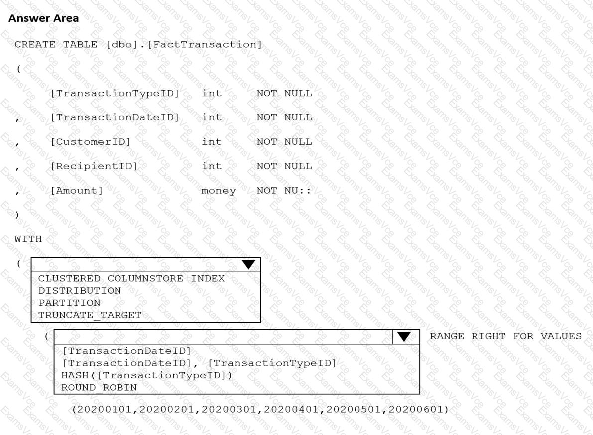 You are building an Azure Synapse Analytics dedicated SQL pool that will contain a fact table for transactions from the first half of the year 2020.