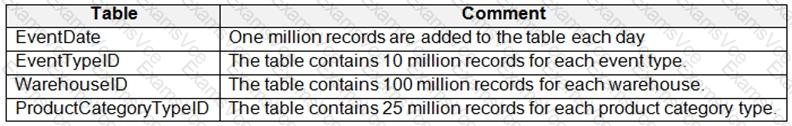 You are designing an inventory updates table in an Azure Synapse Analytics dedicated SQL pool. The table will have a clustered columnstore index and will include the following columns: