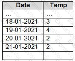 You have an Apache Spark DataFrame named temperatures. A sample of the data is shown in the following table.