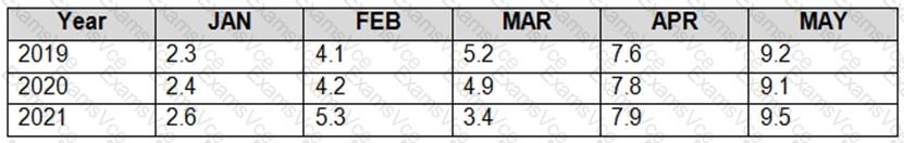 You need to produce the following table by using a Spark SQL query.