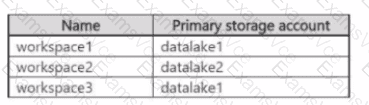 You have an Azure subscription that contains the Azure Synapse Analytics workspaces shown in the following table.