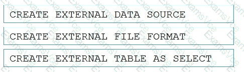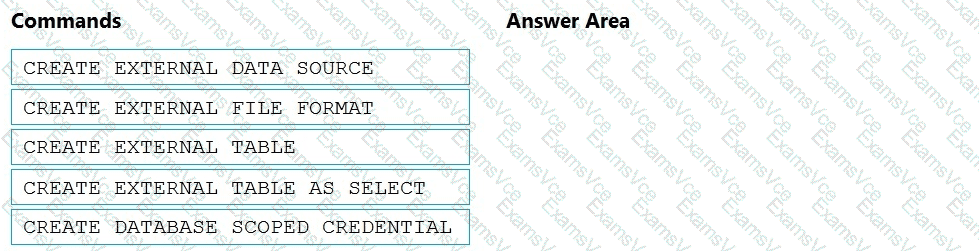 Which three Transaction-SQL DDL commands should you run in sequence? To answer, move the appropriate commands from the list of commands to the answer area and arrange them in the correct order.