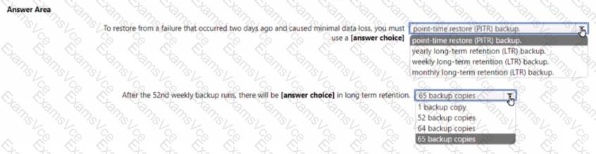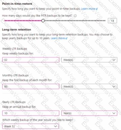 You configure backup for an Azure SQL database as shown in the following exhibit.