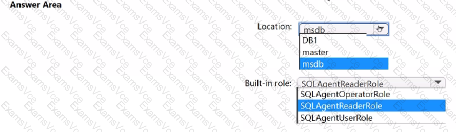 You have an Azure subscription that contains an instance of SQL Server on Azure Virtual Machines named SQLVM1 and a user named User1. SQLVM1 hosts a database named DB1.