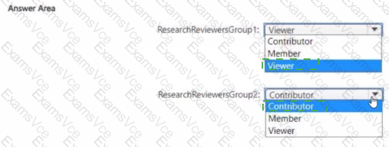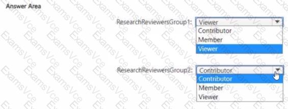 Which workspace rote assignments should you recommend for ResearchReviewersGroupl and ResearchReviewersGroupZ? To answer, select the appropriate options in the answer area.