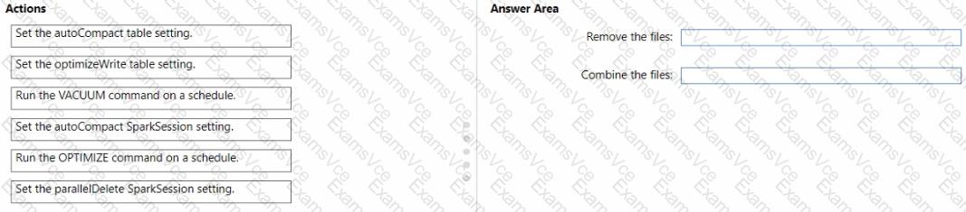 Readings from 100 loT devices are appended to a Delta table in Lakehouse1. Each set of readings is approximately 25 KB. Approximately 10 GB of data is received daily.