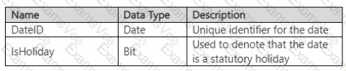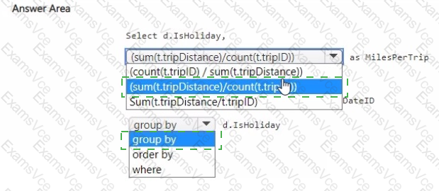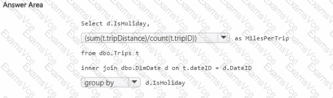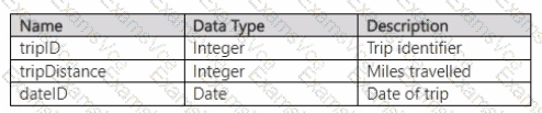 You have a Fabric warehouse that contains two tables named DimDate and Trips.