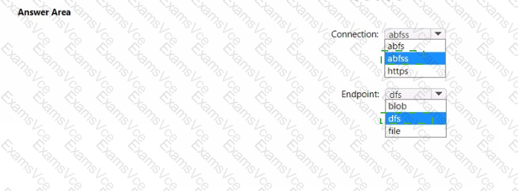 Which connection and endpoint should you specify? To answer, select the appropriate options in the answer area.