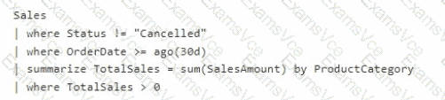 | summarize TotalSales = sum(SalesAmount) by ProductCategory