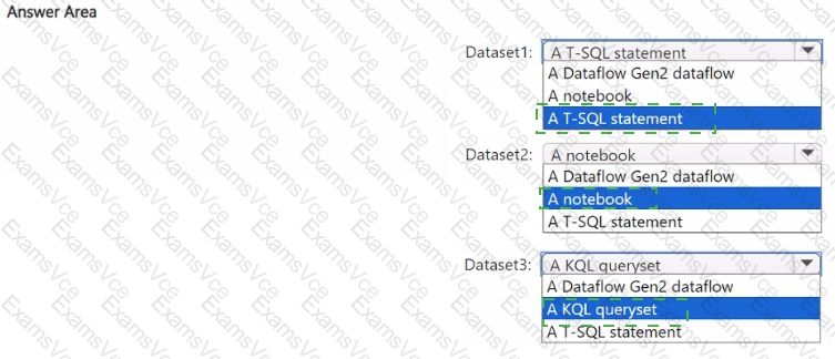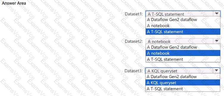 You plan to process the following three datasets by using Fabric: