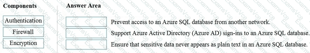 Match the security components to the appropriate scenarios.